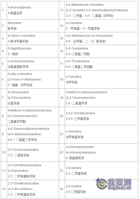1、將24種偶氮染料列為有害污染物,并進(jìn)行管控。建議采用氣相色譜 - 質(zhì)譜聯(lián)用(GC-MS)方法檢測,要求每種偶氮染料含量不得超過30μg/g。需要進(jìn)行偶氮染料檢測的產(chǎn)品如下:
