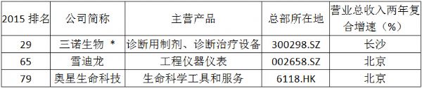 其中,雪迪龍、三諾生物、奧星生命科技等3家儀器/耗材制造商入圍2015福布斯中國上市潛力企業(yè)100強。