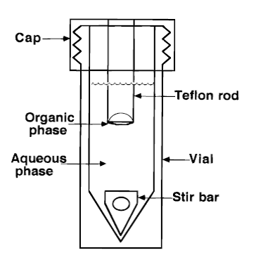 在最簡(jiǎn)單的條件下,使用手動(dòng)HS-SDME,通常用一只注射器抽取1 到 3 μL溶劑,較大的溶劑體積可以提高檢測(cè)靈敏度,但是有使液滴從針頭脫落的危險(xiǎn),一些實(shí)驗(yàn)人員建議把針頭弄粗糙一些,這樣有助于保留住液滴。樣品可以使用20 mL大小的頂空瓶,用水浴加熱20 到 30 min,并進(jìn)行攪拌。萃取之后把液滴吸入針頭內(nèi),注射到氣相色譜儀中進(jìn)行分析。