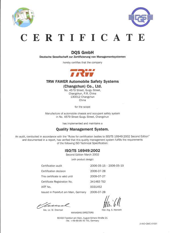 天合富奧汽車安全系統(tǒng)(長春)有限公司是由美國天合汽車(TRW)公司和一汽富奧汽車零部件股份有限公司于1995年10月合資興建的中外合資企業(yè),總投資為31416萬元,中美雙方投資比例分別為:美國天合60% 富奧40% 。 公司坐落于長春市西南部的高新技術(shù)開發(fā)區(qū),占地面積50000平方米,建筑面積17800平方米,現(xiàn)有1200余名員工,在沈陽、成都設(shè)有兩家分公司,是國內(nèi)規(guī)模較大的現(xiàn)代化汽車零部件生產(chǎn)基地之一。 公司通過VDA6.1、TS16949、ISO14001、OHSAS18001等質(zhì)量、安全、健康、環(huán)境體系認(rèn)證。 公司產(chǎn)品包括底盤和安全系統(tǒng)兩大系列,主要產(chǎn)品有制動盤、制動鼓、后輪轂軸和前輪轂、停車制動總成、制動鉗總成、前后轉(zhuǎn)向節(jié)總成、前后滑柱總成、后軸總成、副車架總成、手剎車、方向盤、安全氣囊和安全帶。 公司現(xiàn)已形成了年產(chǎn)200萬輛汽車底盤和制動系統(tǒng)總成、250萬套方向盤和230萬套安全氣囊的生產(chǎn)能力,是國家級高新技術(shù)企業(yè),吉林省重點企業(yè)。 公司主要客戶包括: 一汽轎車、一汽大眾、一汽豐田、上汽集團(tuán)、上海大眾、北京奔馳、華晨寶馬、華晨,南京福特、重慶福特、沃爾沃、廣汽、廣汽菲亞特、奇瑞等18家客戶。 天合富奧汽車安全系統(tǒng)(長春)有限公司將一直奉行積極創(chuàng)新、銳意進(jìn)取、持續(xù)發(fā)展、不斷超越的理念,為中國汽車工業(yè)的發(fā)展做出貢獻(xiàn)。