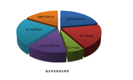 (一)2015年上半年,國家監(jiān)督抽查產(chǎn)品36種。其中包括:童車、旅游鞋、針織內(nèi)衣、童鞋、機(jī)動(dòng)車兒童乘員用約束系統(tǒng)、學(xué)生用品、輪滑鞋和摩托車乘員頭盔等8種日用及紡織品;吸油煙機(jī)、電烤箱、微波爐、電冰箱、儲(chǔ)水式電熱水器、移動(dòng)電話用鋰離子電池和電源適配器等7種電子電器;紙尿褲和衛(wèi)生巾(含衛(wèi)生護(hù)墊)等2種輕工產(chǎn)品;磷酸一銨/磷酸二銨、脫粒機(jī)、植物保護(hù)機(jī)械、殺蟲燈和農(nóng)用薄膜等5種農(nóng)業(yè)生產(chǎn)資料;鎂碳磚、非金屬密封板、砂輪、鋼絲繩、閥門、稀土氧化物、動(dòng)力用煤和海水及苦咸水利用膜產(chǎn)品等8種電工及材料;車床、加工中心(含數(shù)控銑床)、容積式空氣壓縮機(jī)、木工機(jī)床、鎖具、危險(xiǎn)化學(xué)品包裝物等6種機(jī)械及安防產(chǎn)品。