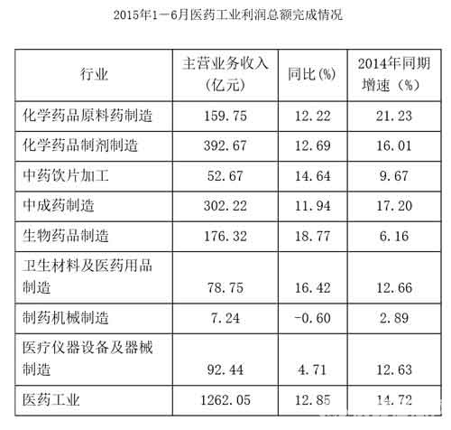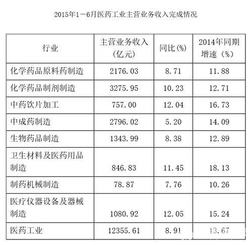 數(shù)據(jù)顯示,2015年1-6月,規(guī)模以上醫(yī)藥工業(yè)增加值同比增長9.9%,增速較上年同期下降3.6個(gè)百分點(diǎn),較一季度環(huán)比下降1.2個(gè)百分點(diǎn),較全國規(guī)模以上工業(yè)增加值增速(6.3%)高3.6個(gè)百分點(diǎn)。