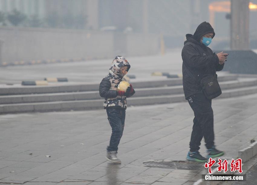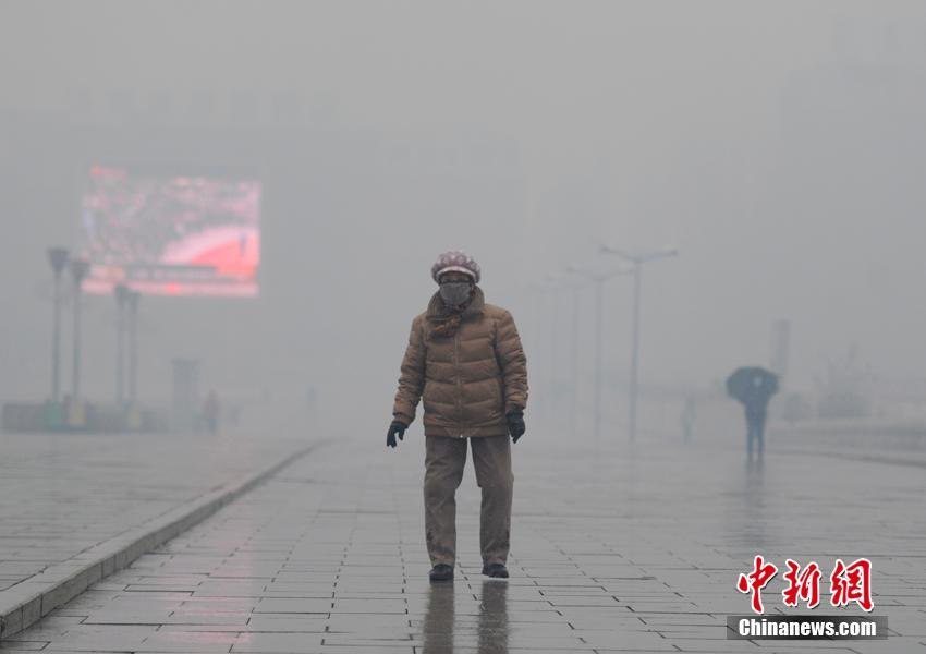 記者在沈陽(yáng)市內(nèi)街頭采訪看到,城區(qū)被灰白色的煙霾籠罩,能見(jiàn)度不足百米。隨著時(shí)間推移,霧霾不斷加重,街頭車輛行駛緩慢,行人則大都佩戴著口罩,行色匆匆。