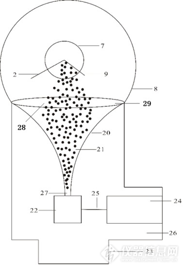 圖1:2.一次離子;7.樣品;8.真空腔;9.二次離子;21.中性粒子;22.中性粒子;23.泵;24.小型質(zhì)量分析器;25.離子;26.真空腔;27.接口;28.接口;29.接口。