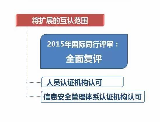 2015年,CNAS接受國際同行評(píng)審對(duì)我們已經(jīng)加入互認(rèn)的認(rèn)可制度的全面復(fù)評(píng)。同時(shí),我們還新申請(qǐng)擴(kuò)展互認(rèn)范圍,包括信息安全管理體系認(rèn)證機(jī)構(gòu)認(rèn)可和人員認(rèn)證機(jī)構(gòu)認(rèn)可兩項(xiàng)認(rèn)可制度。