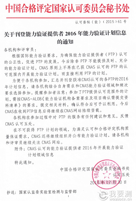 關(guān)注|CNAS發(fā)布和實(shí)施《能力驗(yàn)證提供者認(rèn)可受理要求的說明》..