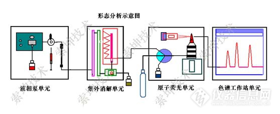 1、液相色譜原子熒光光譜聯(lián)用儀(原子熒光形態(tài)分析儀):由液相色譜儀(包括液相色譜泵和手動(dòng)進(jìn)樣閥)、在線消解模塊與原子熒光光譜儀組成。