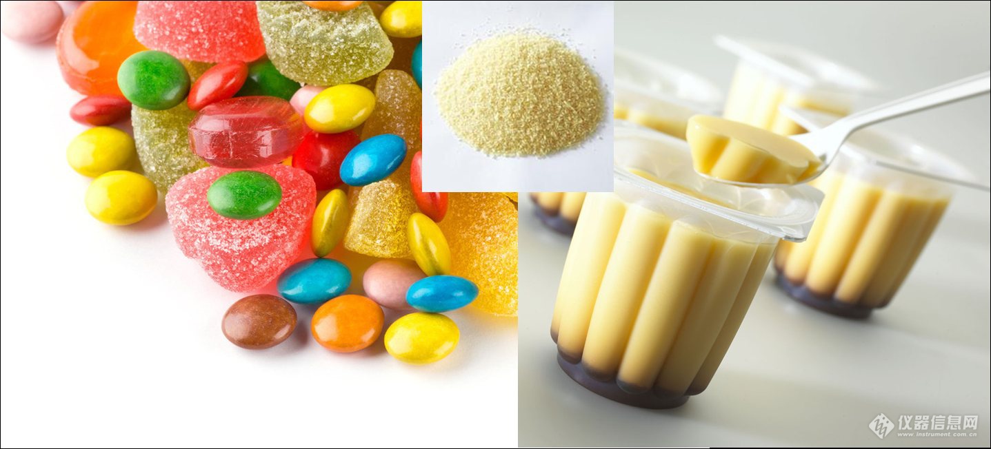 Q彈的軟糖就是食用明膠的作為添加劑的典型應(yīng)用。但是明膠單品是無法食用的,需要和砂糖,食鹽,酒精等副材料一起調(diào)理。副材料的含量學(xué)問可不少,它們會對溶膠/凝膠化的溫度產(chǎn)生一定的變化,必需要借助熱分析儀來研究。