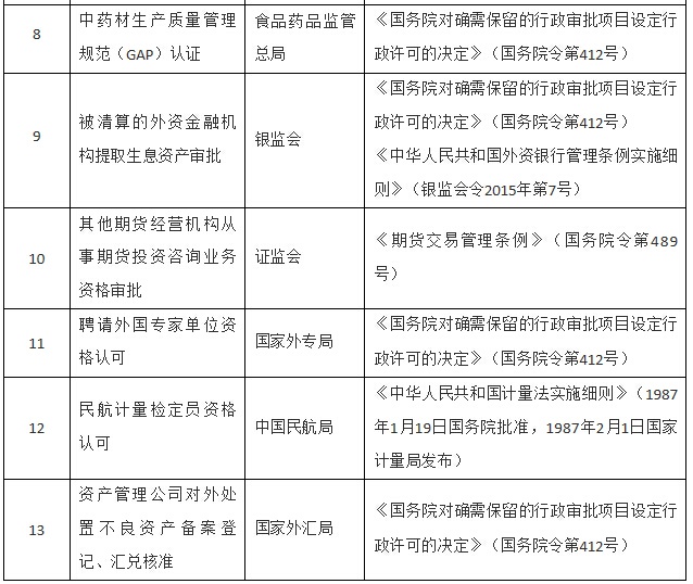 經(jīng)研究論證,國務(wù)院決定取消13項行政許可事項,現(xiàn)予公布。