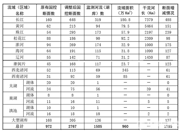 國控地表水環(huán)境質(zhì)量監(jiān)測(cè)網(wǎng)點(diǎn)位分布情況表