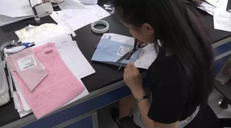 從實驗室出來后,檢測人員來到了一個倉庫。倉庫里堆滿了大大小小的包裹,檢測人員介紹,這些都是最近收到的樣品。檢測人員告訴我們,對樣品信息整理也是此次大學(xué)生買樣團成員的暑期實踐內(nèi)容之一。而在省紡測院的實驗室里,另一組參與實踐的買樣團成員已經(jīng)體會到了實驗的樂趣了。