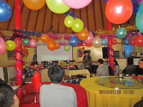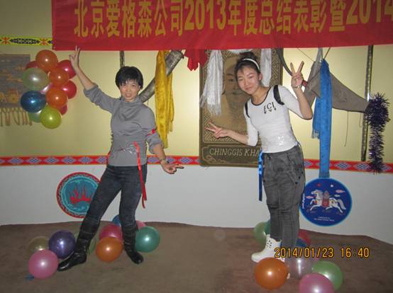 二零一四馬年到,萬馬奔騰景壯觀。2014年1月23日至24日,愛格森公司2013年度總結(jié)表彰暨2014年迎新會在北京莎日娜蒙古風(fēng)情生態(tài)觀光園隆重舉行。公司全體員工與各級領(lǐng)導(dǎo)歡聚一堂。年會現(xiàn)場充滿了激情、熱烈、活躍的氣氛。首先愛格森總經(jīng)理致辭,向一年中為公司做出杰出貢獻的全體員工致以新春的問候和美好的祝福;隨后各部門人員分別做年終總結(jié)與計劃;最后由副總經(jīng)理對2013年度工作做出整體匯報,并對2014年工作做出重要部署和規(guī)劃。