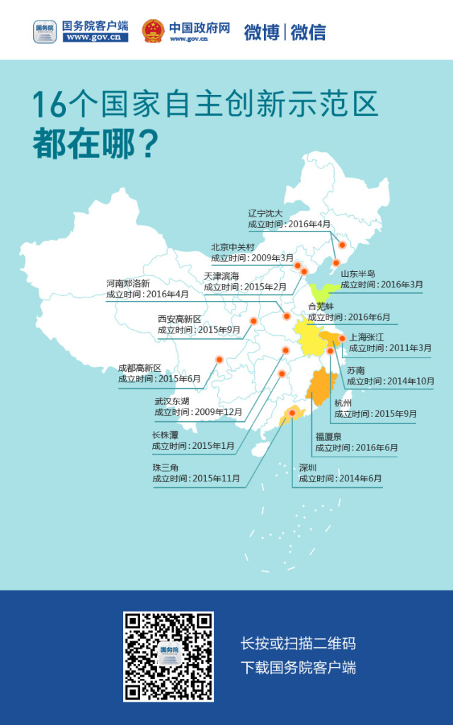 像小方一樣希望回家鄉(xiāng)創(chuàng)業(yè)的青年們,也可以享受良好的創(chuàng)業(yè)創(chuàng)新環(huán)境了。3月,國務院召開常務會議,決定新設一批國家自主創(chuàng)新示范區(qū)。4月起,國務院分別批復新設了沈大國家高新區(qū)、山東半島國家高新區(qū)和鄭洛新國家高新區(qū)3個國家自主創(chuàng)新示范區(qū)。6月,國務院又分別批復了福廈泉和合蕪蚌國家高新區(qū)建設國家自主創(chuàng)新示范區(qū)。這樣,國家自主創(chuàng)新示范區(qū)增至16個。
