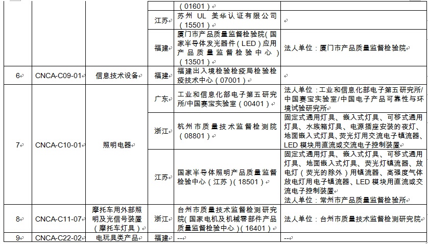 產(chǎn)品認(rèn)證實驗室指定決定的公告