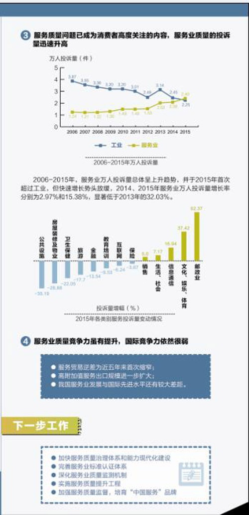 針對本次監(jiān)測過程中發(fā)現(xiàn)的問題,質(zhì)檢總局已經(jīng)啟動(dòng)服務(wù)業(yè)質(zhì)量提升專項(xiàng)行動(dòng),并將聯(lián)合有關(guān)部門采取有針對性措施,提高中國服務(wù)質(zhì)量與品牌水平,進(jìn)一步強(qiáng)化服務(wù)經(jīng)濟(jì)發(fā)展與產(chǎn)業(yè)結(jié)構(gòu)優(yōu)化升級的質(zhì)量、標(biāo)準(zhǔn)、品牌、創(chuàng)新等核心要素支撐。