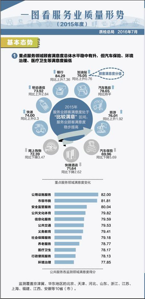 共采集有效調(diào)查問卷5萬份、網(wǎng)絡(luò)媒體與公眾評價(jià)信息52萬條;對銀行、移動(dòng)通信、網(wǎng)上購物等12個(gè)競爭性服務(wù)領(lǐng)域,以及醫(yī)療衛(wèi)生、安全監(jiān)管服務(wù)、公用設(shè)施服務(wù)等12個(gè)公共服務(wù)領(lǐng)域開展了監(jiān)測分析;監(jiān)測綜合采用統(tǒng)計(jì)調(diào)查、文獻(xiàn)檢索、互聯(lián)網(wǎng)大數(shù)據(jù)分析和統(tǒng)計(jì)資料比對等方法......經(jīng)過多個(gè)部門的協(xié)同“作戰(zhàn)”,質(zhì)檢總局近日正式公布了2015年重點(diǎn)服務(wù)行業(yè)質(zhì)量監(jiān)測分析結(jié)果。
