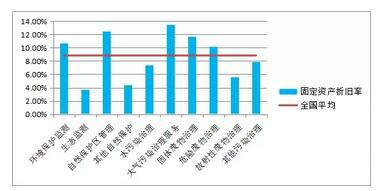圖72015年環(huán)境服務(wù)細(xì)分領(lǐng)域企業(yè)固定資產(chǎn)折舊率(數(shù)據(jù)來源:2015年度環(huán)境服務(wù)業(yè)財(cái)務(wù)統(tǒng)計(jì)調(diào)查)