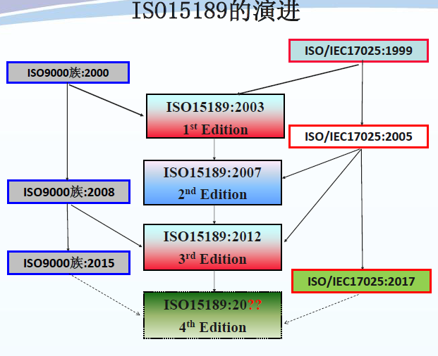 因其來源于ISO9000族和ISO/IEC17025,在以上發(fā)生修訂或改版時必然引起ISO15189發(fā)生變化,如ISO9000族:2000和ISO/IEC17025:1999對應(yīng)的是ISO15189:2003、ISO9000族:2008和ISO/IEC17025:2008對應(yīng)的是ISO15189:2007和ISO15189:2012,也是使用最多的版本。ISO9000族:2015和ISO/IEC17025:2017已經(jīng)面世,ISO15189:20??的來世應(yīng)該就在眼前,按照其上游標(biāo)準(zhǔn)變化思路其應(yīng)會發(fā)生比較大的改動。在認(rèn)可路上的醫(yī)學(xué)實驗室應(yīng)加把勁,在換版前爭取通過醫(yī)學(xué)實驗室認(rèn)可。