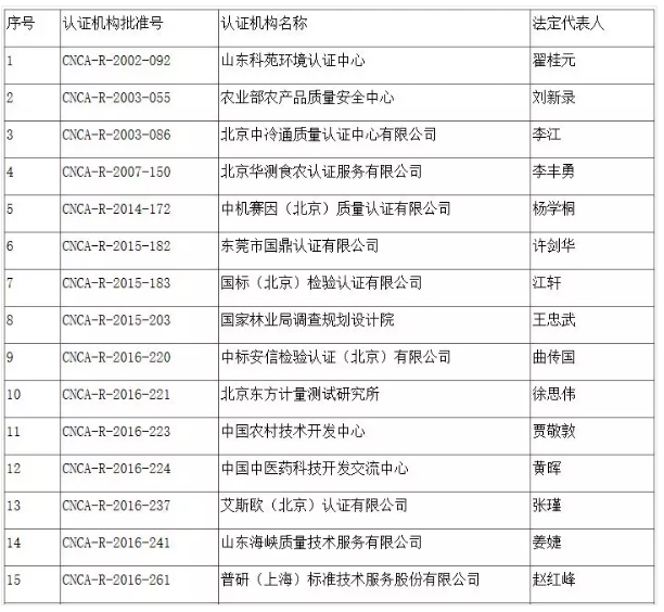 因上海色瑞斯認(rèn)證有限公司(法定代表人:袁才勇)出具虛假認(rèn)證結(jié)論,國(guó)家認(rèn)監(jiān)委依據(jù)《中華人民共和國(guó)認(rèn)證認(rèn)可條例》第六十二條第一款的規(guī)定,撤銷(xiāo)上海色瑞斯認(rèn)證有限公司認(rèn)證機(jī)構(gòu)批準(zhǔn)書(shū)。上海色瑞斯認(rèn)證有限公司為下列企業(yè)頒發(fā)的有機(jī)產(chǎn)品認(rèn)證證書(shū)無(wú)效:上海桃樂(lè)絲葡萄酒貿(mào)易有限公司,證書(shū)編:F50OP1600054、F50OP1700047; 喜樂(lè)之泉有限公司,證書(shū)編號(hào):F50OP1500010;AGRICOLA FRUTICOLA MARANELLO CTDA,證書(shū)編號(hào):F50OP1700019;SOCIEDAD HUERTOS COLLIPULLI S.A.,證書(shū)編號(hào):F50OP1700017;Hibernia Misiones S.A.,證書(shū)編號(hào):F50OP1700021;BORGES ORGANIC OLIVE OIL COMPANY,證書(shū)編號(hào):F50OP1500036;EL?TE NATUREL ORGAN?K GIDA SANAY? VE T?CARET ANON?M ??RKET?,證書(shū)編號(hào):F50OP1700028、F50OP1700029、F50OP1700030。