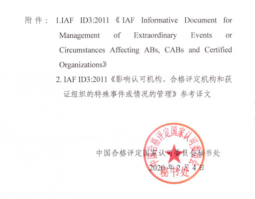IAF ID3:2011《影響認可機構、合格評定機構和獲證組織的特殊事件或情況的管理》參考譯文