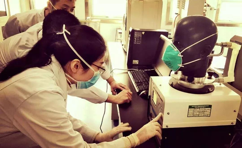 圖為檢測人員進行口罩產(chǎn)品檢測