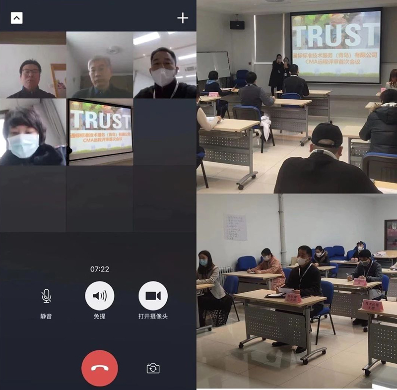圖為山東省市場監(jiān)管部門開展檢測機構(gòu)外科口罩緊急擴項遠程評審