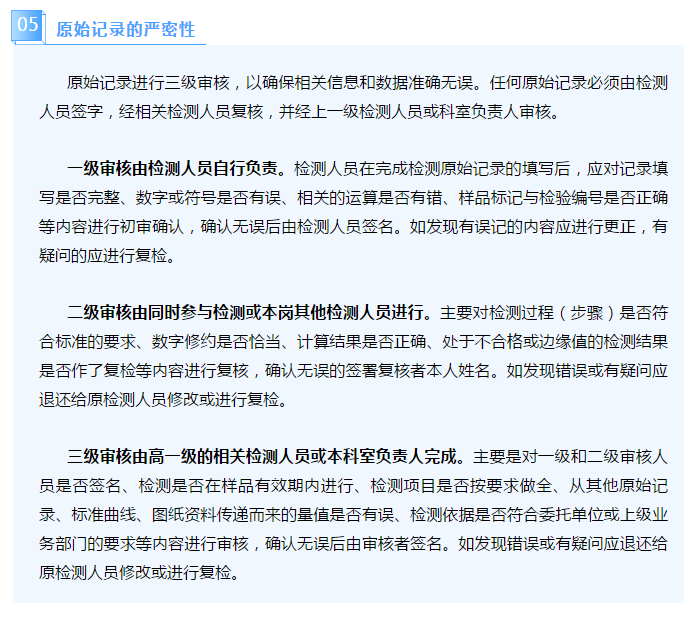 3.每項檢測或校準的記錄應包含充分的信息,以便在可能時識別不確定度的影響因素,并確保該檢測或校準在盡可能接近原條件的情況下能夠重復。記錄應包括負責抽樣的人員、每項檢測和/或校準的操作人員和結果校核人員的標識。