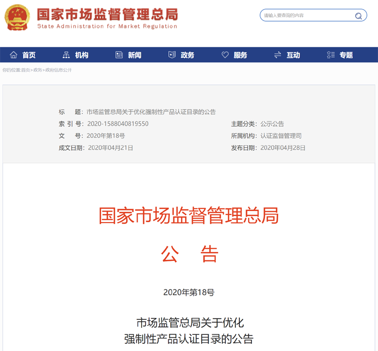 近日,市場監(jiān)管總局官網發(fā)布公告,為進一步深化強制性產品認證制度改革,市場監(jiān)管總局(認監(jiān)委)根據(jù)歷次強制性產品認證目錄調整情況,在不改變強制性產品認證實施范圍的基礎上,對目錄內部分產品種類進行歸并和優(yōu)化。優(yōu)化后的強制性產品認證目錄共17大類103種產品,現(xiàn)予公布。