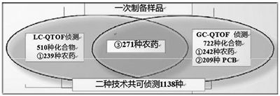 “過去我們研究的一次制備樣品同時檢測400種至500種農(nóng)藥多殘留的高通量檢測方法,屬于低分辨一級質(zhì)譜和二級質(zhì)譜檢測技術(shù),樣品需要多次檢測,比較耗時費力。”龐國芳說。在他的主持下,近兩年,龐國芳團(tuán)隊研究開發(fā)了高分辨質(zhì)譜檢測技術(shù)氣相色譜—四級桿—飛行時間質(zhì)譜( GC—Q—TOFMS )和液相色譜—四級桿—飛行時間質(zhì)譜( LC—Q—TOFMS ),其分辨率提高了千倍,分辨精確度可達(dá)到百萬分之五,而且獲得的農(nóng)藥定性點可多達(dá)30個,遠(yuǎn)超歐盟對化合物4個定性點的要求,大大提高了農(nóng)藥殘留的發(fā)現(xiàn)能力。龐國芳團(tuán)隊用上述新開發(fā)的兩種技術(shù)評價了1200多種農(nóng)藥化學(xué)污染物在不同條件下的質(zhì)譜特征,建立了一級和二級精確質(zhì)量質(zhì)譜數(shù)據(jù)庫。在此基礎(chǔ)上,研究開發(fā)了一次樣品制備、兩種技術(shù)同時檢測1138種農(nóng)藥殘留的新方法。