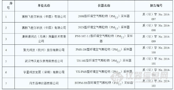 近日,中國(guó)環(huán)境監(jiān)測(cè)總站公布新一批環(huán)境空氣顆粒物(PM2.5)采樣器認(rèn)證檢測(cè)合格產(chǎn)品名錄,共有6家廠商的7種產(chǎn)品通過(guò)此次認(rèn)證檢測(cè),廠商包括賽默飛、聚光科技、武漢天虹、宇星科技等。具體名單見(jiàn)下表。