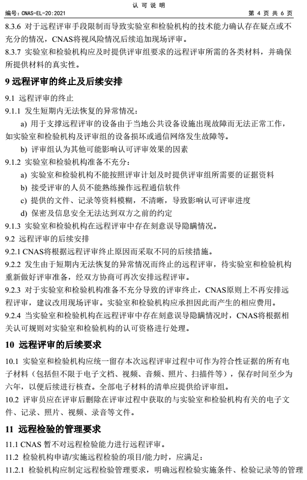 那么,實驗室認可和檢驗機構(gòu)認可什么情況下適用于遠程評審?以下為CNAS-EL-20:2021《實驗室和檢驗機構(gòu)認可遠程評審的應(yīng)用說明》全文: