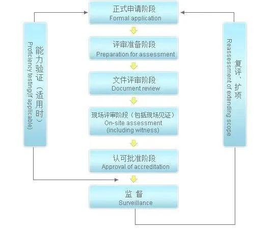 5.2.1.4 擴大認可范圍的認可程序與初次認可相同,必須經(jīng)過申請、評審、評定和批準。