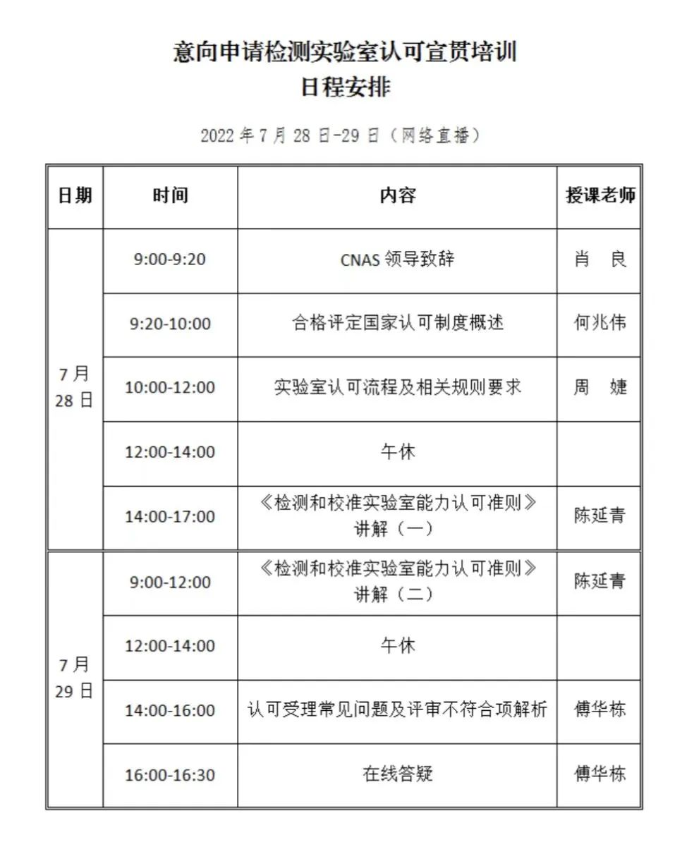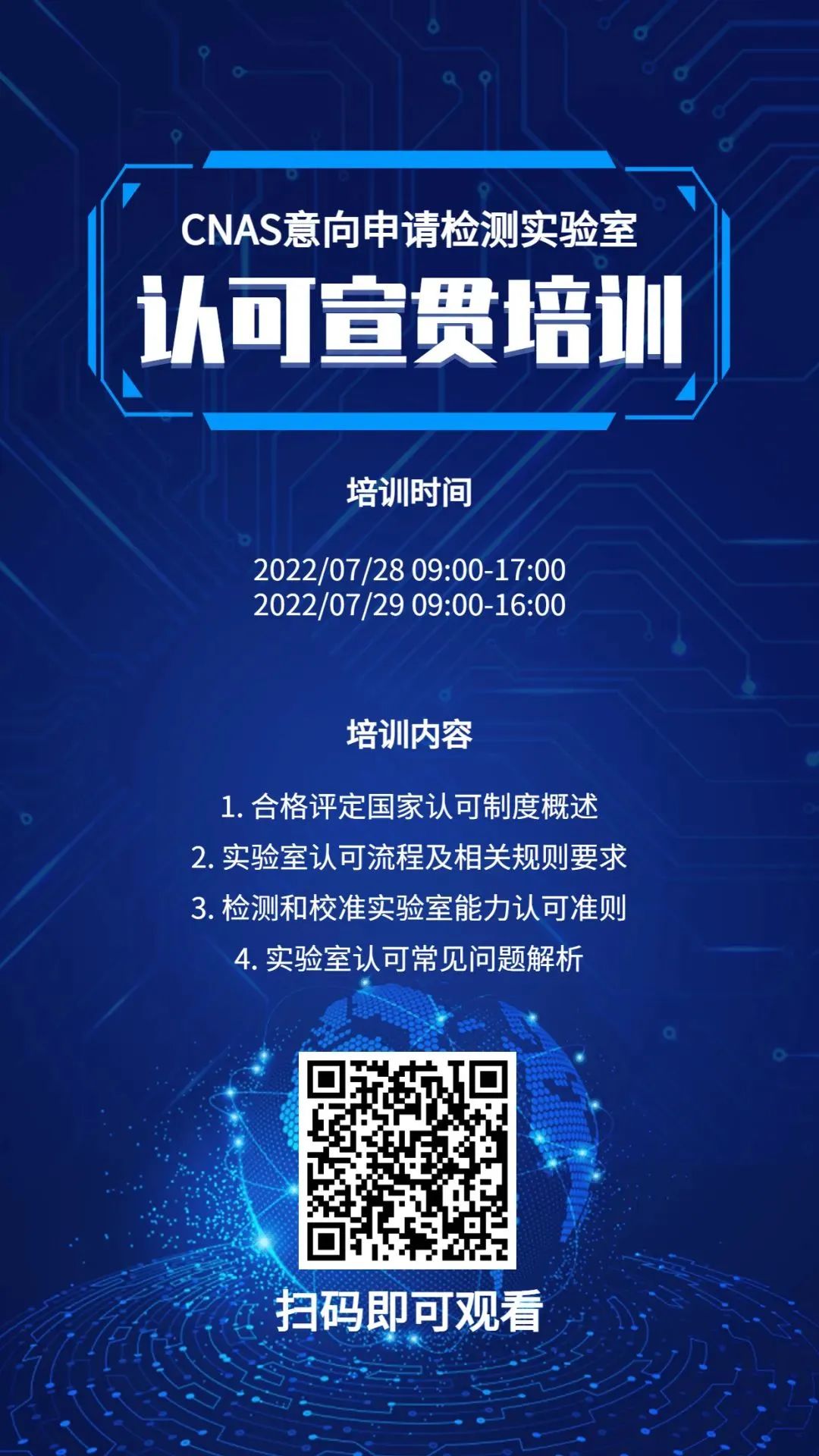 為統(tǒng)籌推進疫情防控和經(jīng)濟社會發(fā)展工作,促進檢測實驗室能力提升,中國合格評定國家認可委員會(CNAS)定于2022年7月28日至29日在線舉辦意向申請檢測實驗室認可宣貫培訓。
