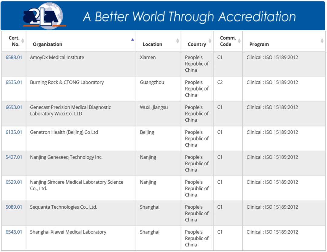 (二)國內(nèi)通過A2LA實驗室名單