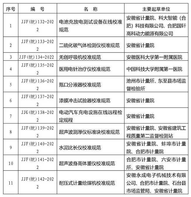 11項安徽省地方計量技術(shù)規(guī)范本月實(shí)施