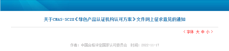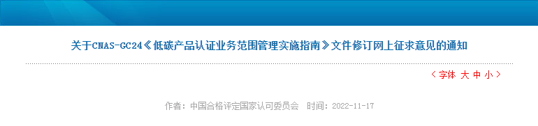 為更好地適應(yīng)低碳產(chǎn)品認(rèn)證機(jī)構(gòu)認(rèn)可工作發(fā)展,中國合格評定國家認(rèn)可委員會(huì)(CNAS)秘書處組織對CNAS-GC24《低碳產(chǎn)品認(rèn)證業(yè)務(wù)范圍管理實(shí)施指南》進(jìn)行了修訂,目前已完成文件征求意見稿,現(xiàn)于網(wǎng)上公示征求意見。