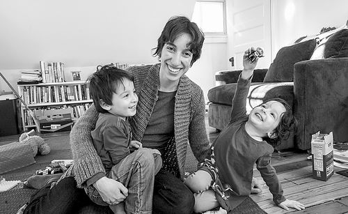 Jennifer Couzin-Frankel與兩個(gè)孩子正在做游戲。和很多人一樣,她希望在孩子成長(zhǎng)過程中,通過基因檢測(cè)在某種程度上保護(hù)家人的健康。圖片來源:APRIL SAUL